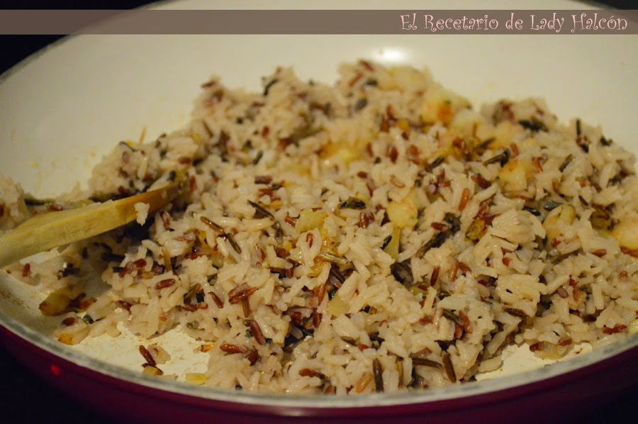 Añade el arroz, salpimienta, remueve y saltéalo durante un par de minutos. Retíralo del fuego y deja que se temple.