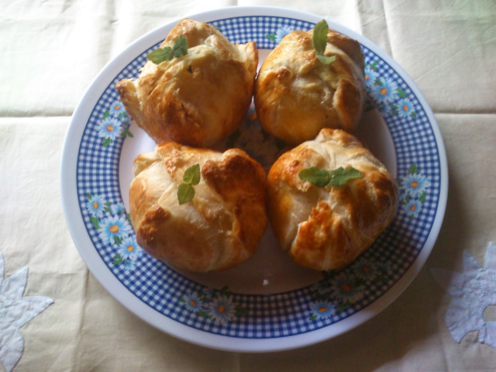 Las colocamos sobre 4 cuadrados de hojaldre, pinchado con un tenedor.