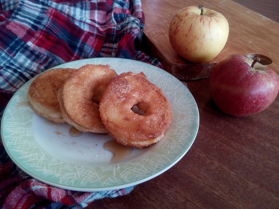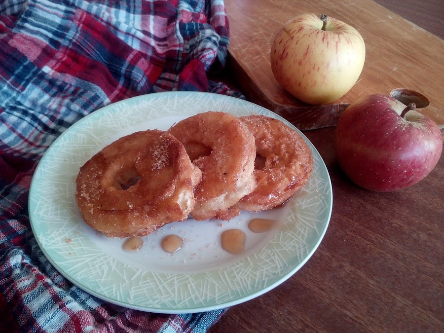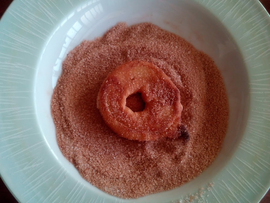 Cuando todas las rodajitas de manzanas estén bien doradas, las rebozamos en azúcar y canela para que queden bien cubiertas.
