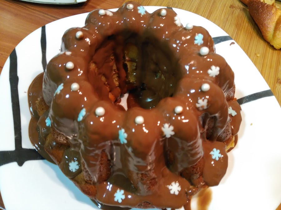 - Si queréis ponerle cobertura de chocolate, deshaced el chocolate elegido (de cobertura) en nata (crema de leche), lentamente en el microondas o al baño maría. De todas maneras, el bizcocho solo, está impresionante.