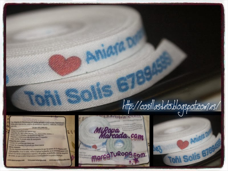 Bien es un producto , que me ha sorprendido por lo fácil que es ponerlo, se queda pegado en el tejido, de un sólo planchado, sin tener que coser a que es genial, además , podéis personalizarlo con colores y dibujos, poner nombres o el teléfono, como más os guste, yo aproveche a poner también mi nombre y el móvil, ya que cuando salimos sobretodo, estos días pasados con las navidades ,los carnavales o simplemente vamos a un centro comercial, ahora que hace mal tiempo, donde hay tanta gente,que te puedes despistar un segundo y ya tu hij@ desapareció, le puse a mi peque, las dos etiquetas la suya con su nombre y la mía debajo, por si se extraviaba a que es una buena idea. bueno aunque .marcaropa ya ha pensado en esto y ha echo unas Pulseras indentificativas(clika) , si queréis ver un poco mas de esta empresa,os aconsejo que miréis su pagina no os dejara indiferente, www.marcaropa.com,.
