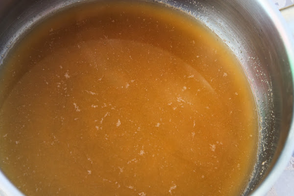 En la misma sartén del asado echamos un vaso de agua de cocer la pintarroja y hervimos un poco el agua para que coja todo el sabor del asado (5´). Pasamos este caldo al vaso triturador junto con la otra mitad de la pintarroja desmenuzada, trituramos, colamos y reservar.