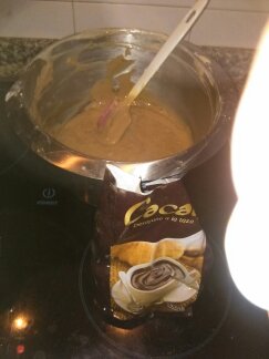 y a la otra le añadiremos el cacao ,la cantidad depende de lo golosos que seamos , pero tres o cuatro cucharadas estaría bien