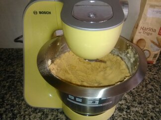 Ahora repartiremos la mezcla en dos partes iguales, una la dejaremos asi tal cual