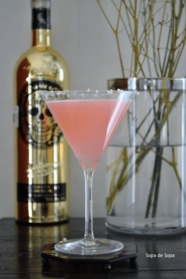 Mojar el borde de la copa primero con agua y luego con sal, intentando que ésta se quede impregnada en el borde.