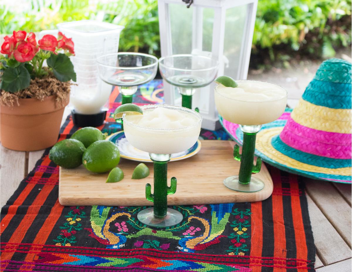Como les dije que en mi familia hacemos las Margaritas Frozen desde hace muchos años, les cuento que estas copas de margarita tienen alrededor de 20-25 años. Mi papá las compró a principios de los años 90. ¡Imagínate! ¡Ha llovido…! Han sobrevivido todo este tiempo y ahora son mías. Estoy loca por hacer una fiestecita mejicana, pero ya tendré la oportunidad en un futuro cercano.