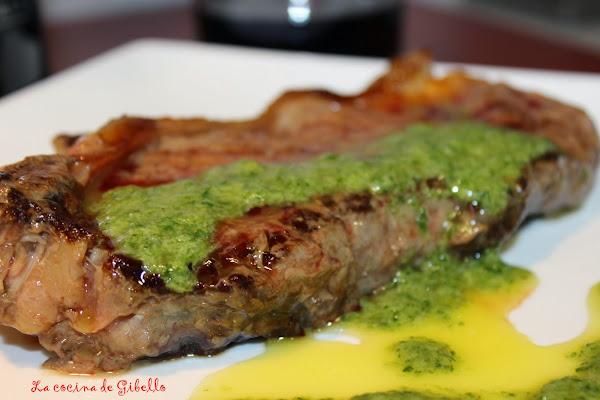 Ahora emplatamos el entrecot con un poquito de salsa de perejil que dará un sabor que disfrutaremos.