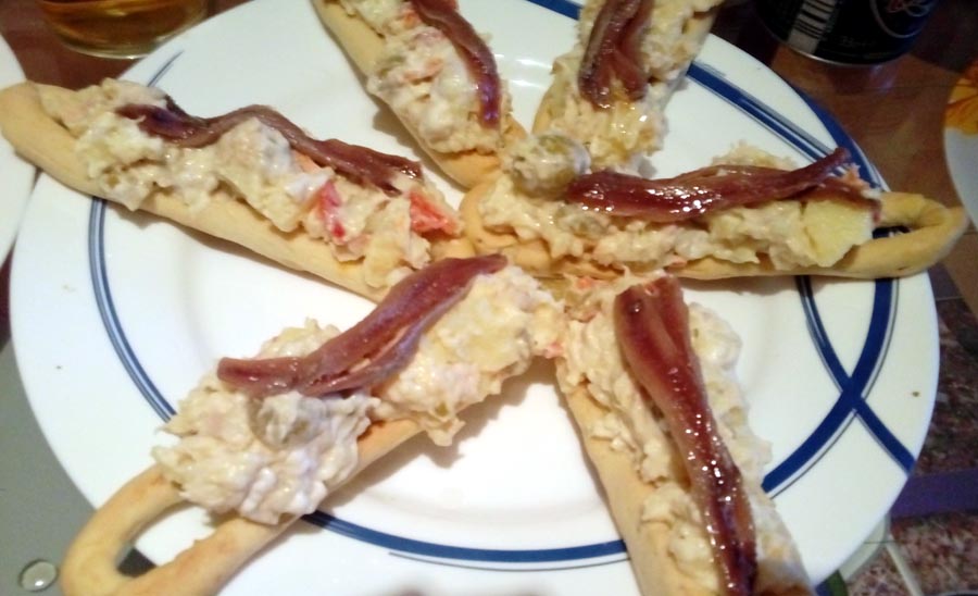 Se acompañan con una ensaladilla rusa con una anchoa de lata y se llaman marineras, están riquísimas.