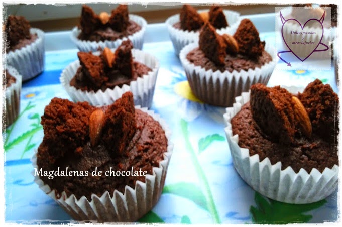 Con ayuda de un cuchillo cortaremos la parte superior de las magdalenas, pero no en recto, quedará mejor si se hace con un ángulo descendente, de forma que quede un huequecito como en esta foto.