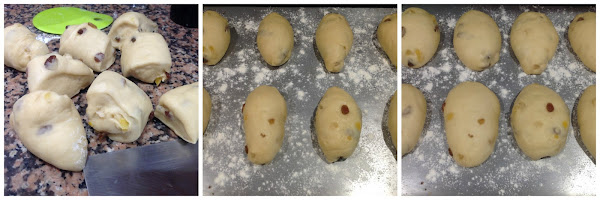 Formamos los panes y colcoamos sobre una bandeja para horno enharinada. Cubrimos con una bolsa de plástico o con papel film y dejamos reposar 30 minutos más.