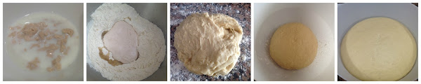Ponemos la harina en un bol, agregamos el azúcar y mezclamos bien. Añadimos la levadura, los huevos, el aceite, comenzamos a amasar y agregamos poco a poco la leche. Volcamos la masa en la encimera enharinada y amasamoa hasta obtener una masa suave que no se pega a los dedos. Ponemos un poco de harina en un bol y colocamos allí la masa. Cubrimos con una bolsa de plástico y dejamos reposar durante 3 horas, en un lugar templado y sin corrientes de aire. Yo la pongo dentro del horno apagado.