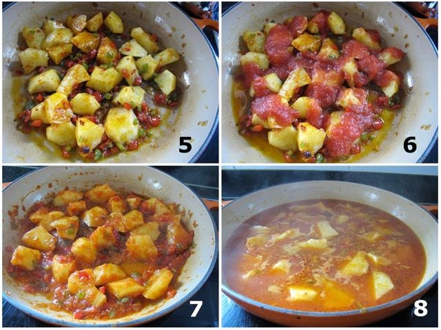 10.- Dejaremos hasta que las patatas estén hechas. Lo normal es que las tengamos blandas en diez minutos pues ya las hemos tenido cocinando, casi quince minutos, al hacer el tomate.