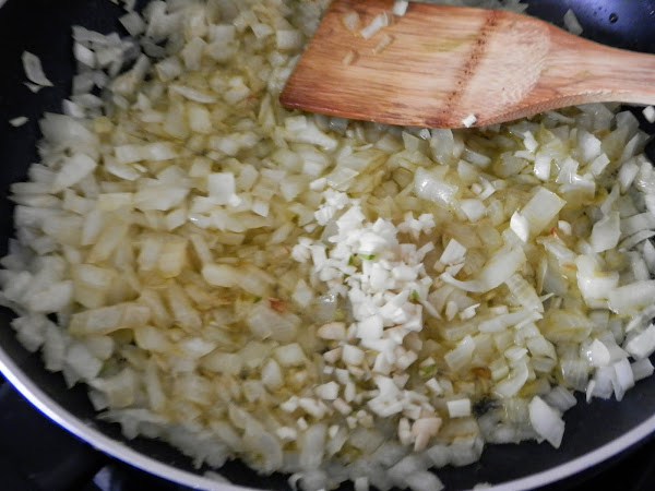 Cuando el aceite esté caliente, añadimos la cebolla y la dejamos sofreír bien hasta que esté transparente.