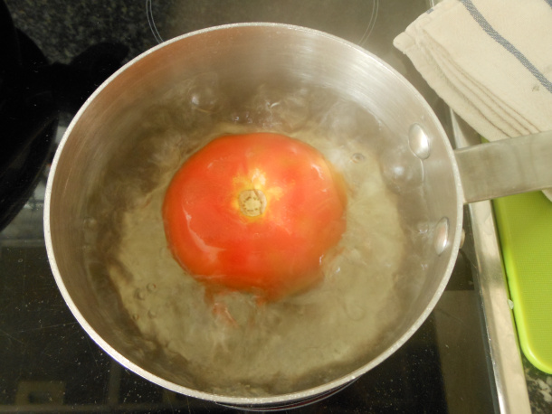 Deja el tomate dentro del agua hirviendo durante 2 minutos.