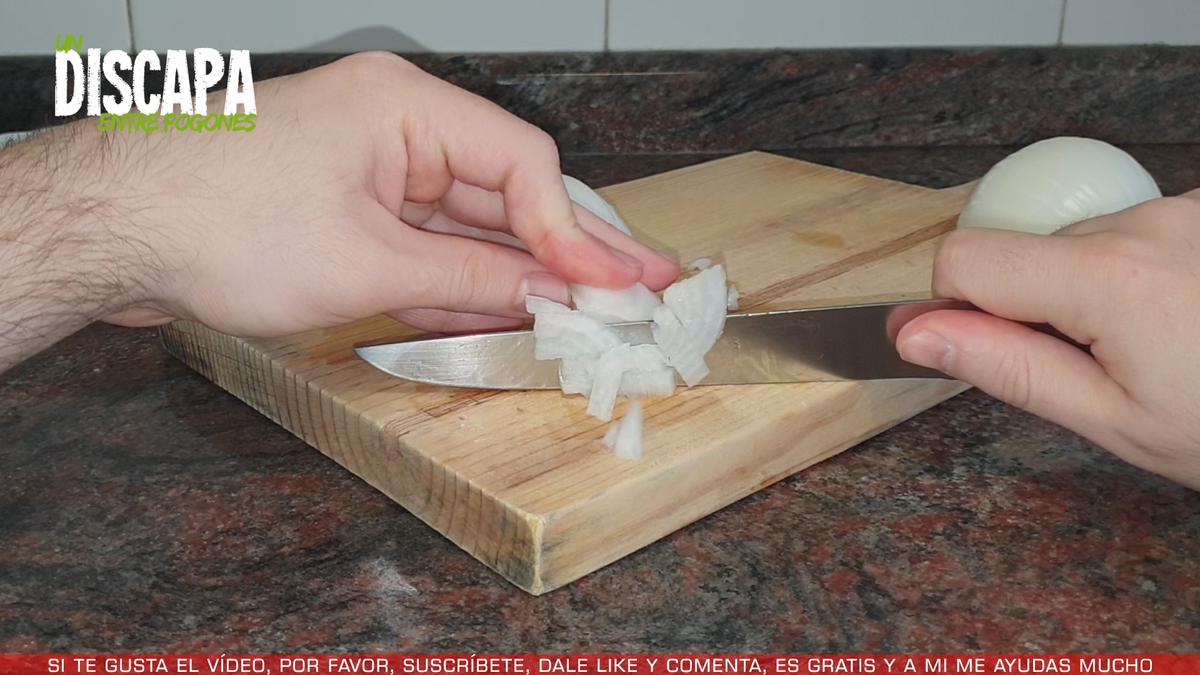 4Ahora cogemos una cebolleta y picamos en trocitos pequeños.