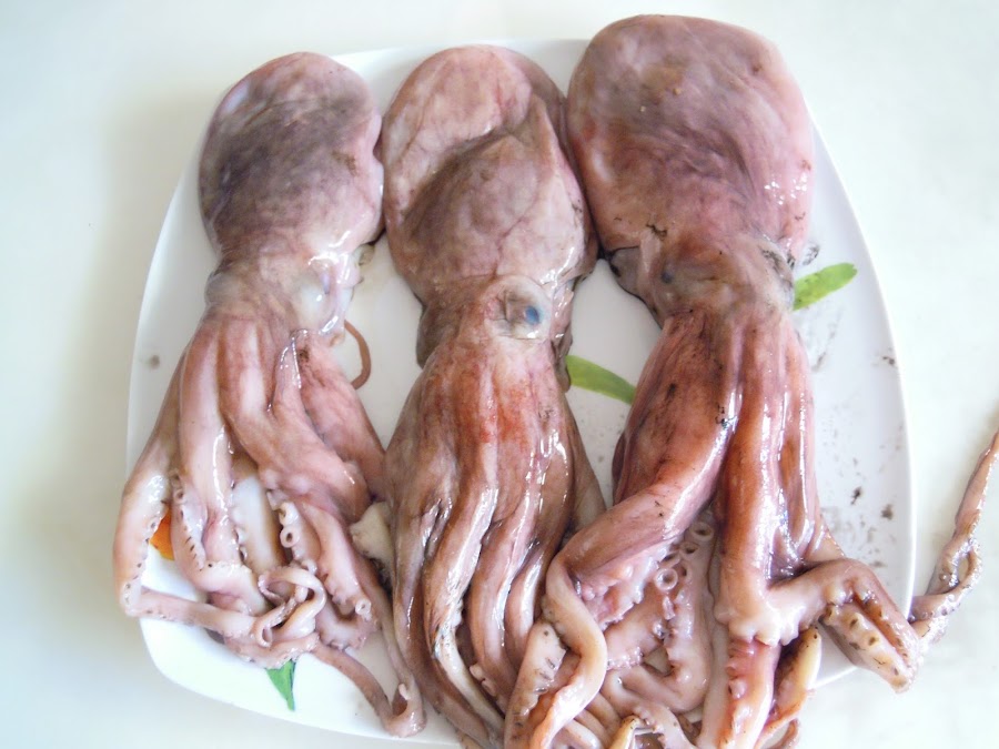 La semana pasada, mirando los puestos de la pescadería, me dí cuenta de que tenían el pulpo muy bien de precio, así que compré tres preciosos pulpos.