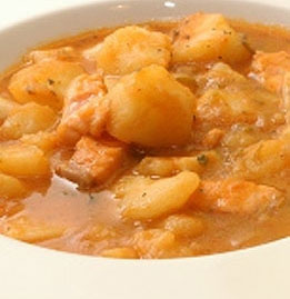 Elaboración: Hacemos el sofrito con un poquito de aceite en una sartén. cuando esté en su punto lo pasamos a una olla grande y añadimos el resto de los ingredientes menos el salmón. Lo dejamos cocer a fuego lento unos 20 min y agregamos el salmón. Ahora tiene que cocer unos 15 min. más aproximadamente. Cuando la patata esté tierna es que está en su punto el marmitako. Sólo queda servir y disfrutar!!