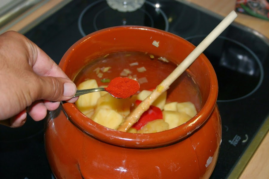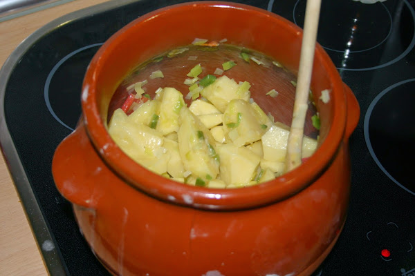 lo dejamos que cueza a fuego medio hasta que la patata este a nuestro gusto y comprobamos como esta de sal