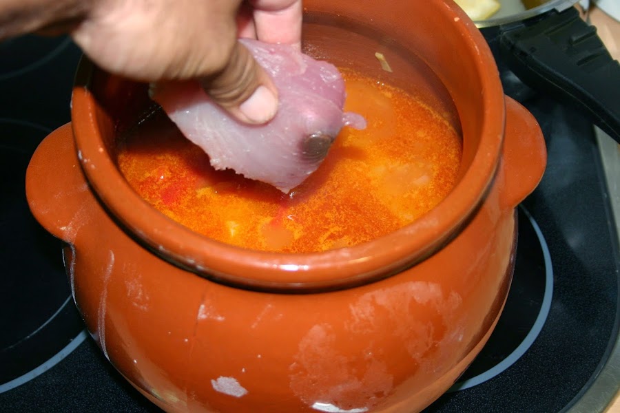 una vez hecha, lo retiramos del fuego y vamos añadiendo los filetes de bonito