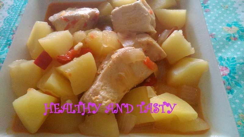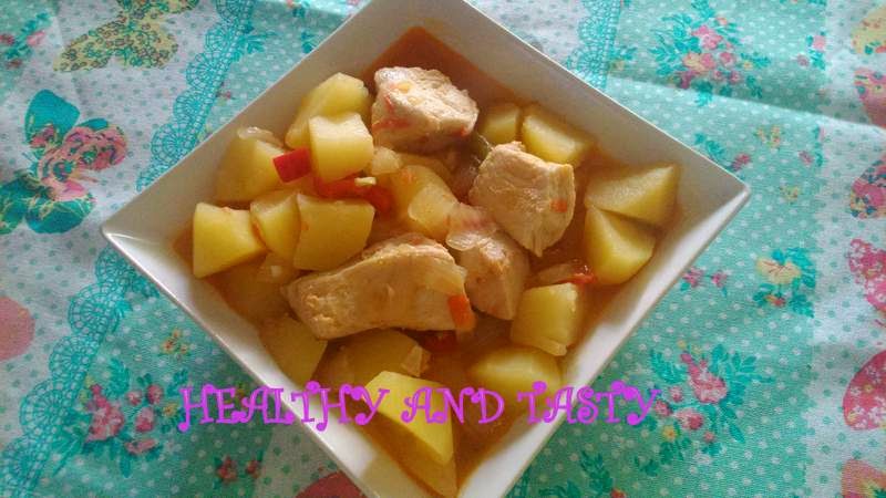 Primero cortamos los pimientos, la cebolla, el tomate (pelado) y el ajo en brunoise. Ponemos en una olla un poco de aceite de oliva y pochamos las verduras, incorporándolas en este orden: ajo, cebolla, pimientos y por último el tomate. Una vez pochada la verdura, retiramos del fuego y añadimos el pimentón dulce y seguidamente las patatas cortadas como para guisar. Removemos un poco para que se impregnen las patatas bien y cubrimos rápidamente con agua para que no se queme el pimentón. Echamos sal y ponemos al fuego de nuevo.Cuando las patatas estén tiernas, casi terminadas, añadimos el bonito o atún cortado en trocitos y dejamos cocinar unos minutos (no mucho porque el bonito se hace enseguida). Rectificamos el punto de sal y listo.