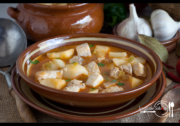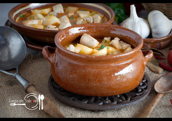 Añadir el caldo de pescado y la cucharada de pimiento choricero y la guindilla o chile (si es que os gusta un poco picante) esperar a que empiece a hervir.