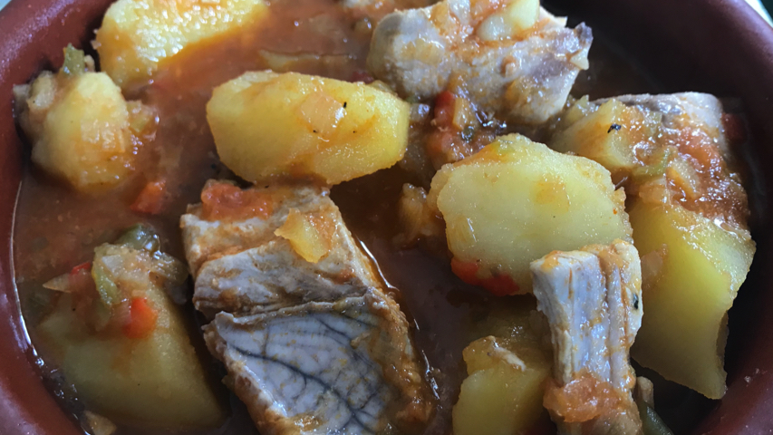 Limpia el bonito (te lo pueden hacer en la pescadería) y corta en dados de bocado. Reserva.