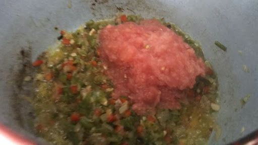 Sofrito el tomate añade el pimentón. Yo pongo el doble de dulce que de picante.