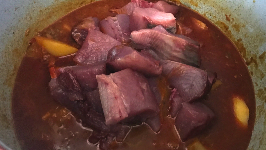 Una vez la patata cocida, incorpora el bonito troceado que se hará en apenas un minuto.