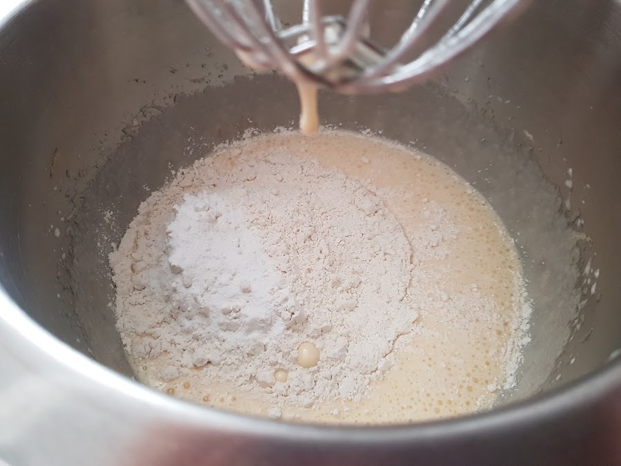 5. - Añadimos la vainilla y volvemos a mezclar, le añadimos la harina con la sal y la levadura y volvemos a mezclar de nuevo.
