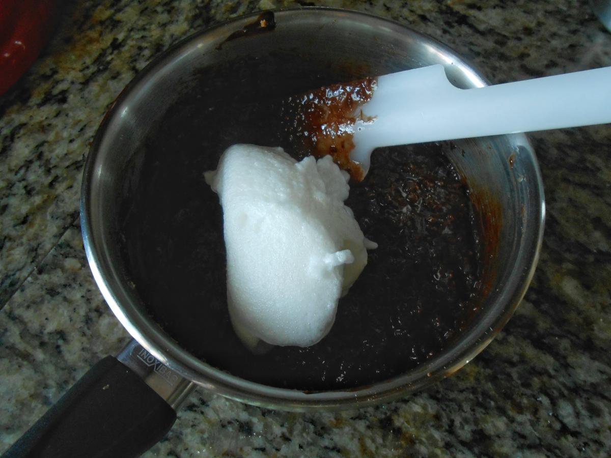 Cuando esté bien fundido separar del fuego y añadir las yemas, envolver bien para integrarlas al chocolate.