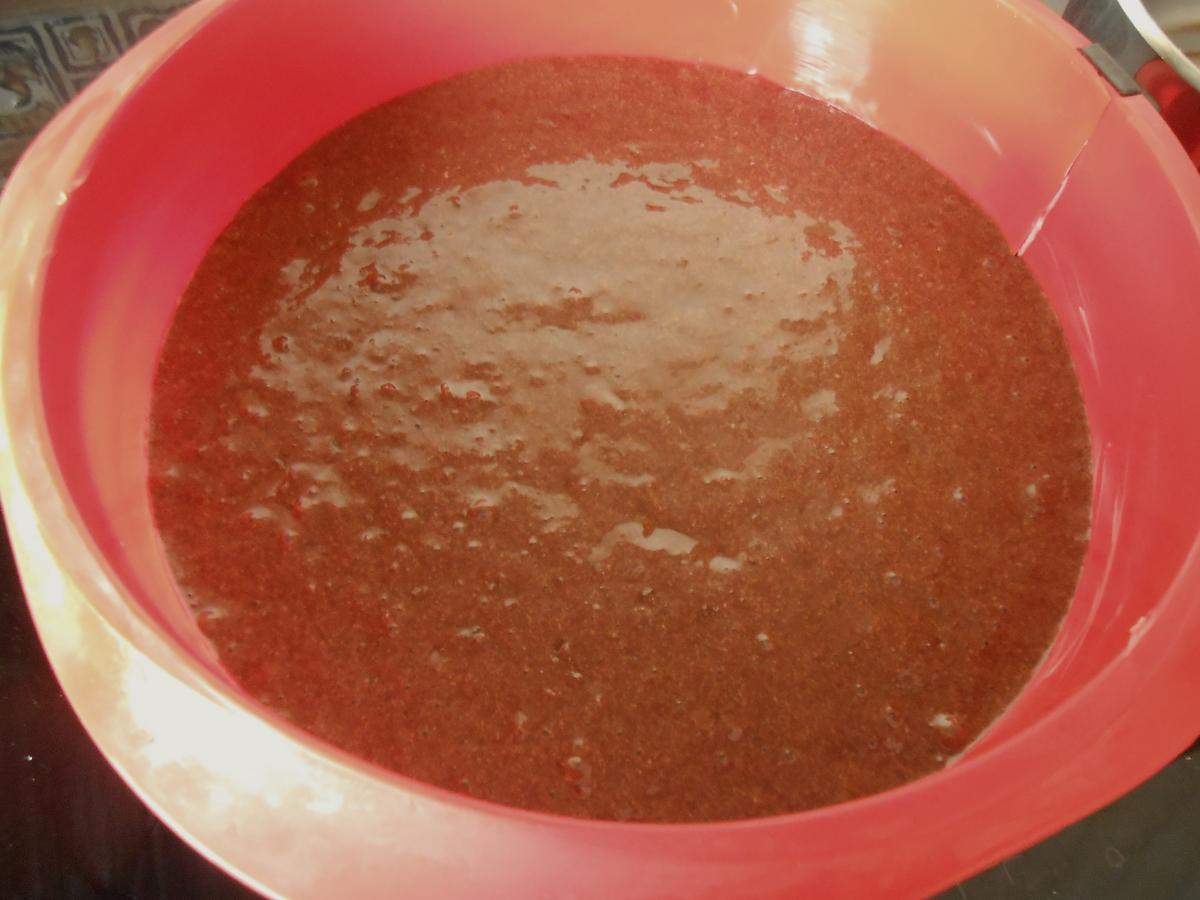 Echar sobre la tarta, se puede servir en el momento, o volver a meter a la nevera hasta que podamos servirla, de las dos formas está buenísima.