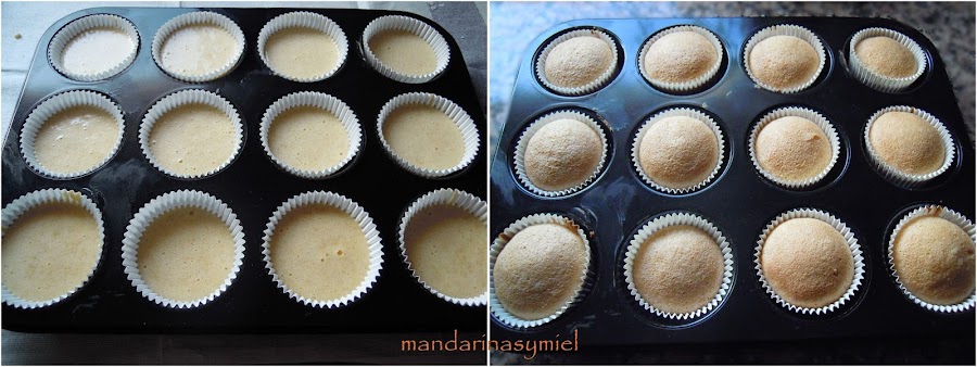 Cuando lleven 15 minutos en el horno, comprueba si están hechas pinchando con un palito y si sale limpio, ya están. No las tengas más tiempo del necesario porque se secarán demasiado, más vale que estén algo tiernas que cuando se enfrían se endurecen un poco.