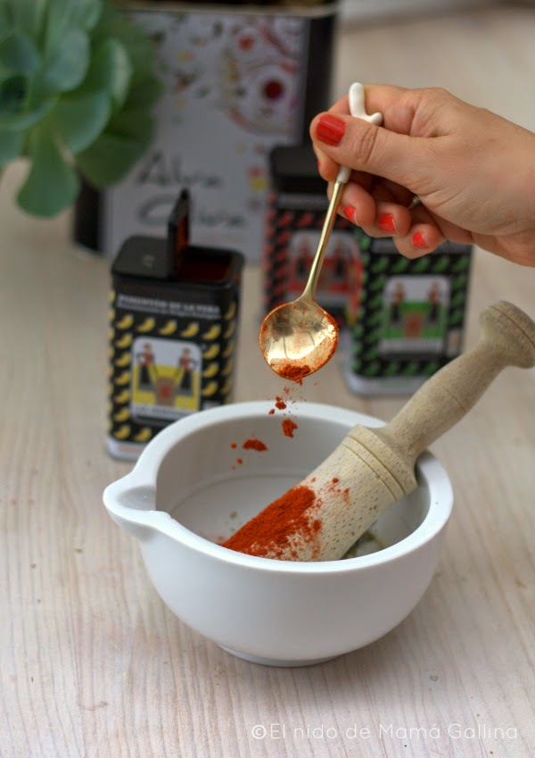 El otro día recibí un mail de pimentón "Las Hermanas", diciendo que les gustaba mi blog y que querían mandarme pimentón de la Vera, hasta aquí todo normal, lo que más me llamó la atención es que no me pedían nada a cambio, algo raro en estos tiempos. Así que como son tan majos y tienen un pimentón buenísimo, os recomiendo que os paséis por su web. Hace muchos años que consumo pimentón de la Vera, porque me encanta su sabor ahumado y he de agradecerles que me hayan permitido conocer el pimentón agridulce, de un sabor sorprendente y delicioso , que es el que usado para esta receta.
