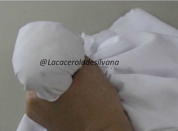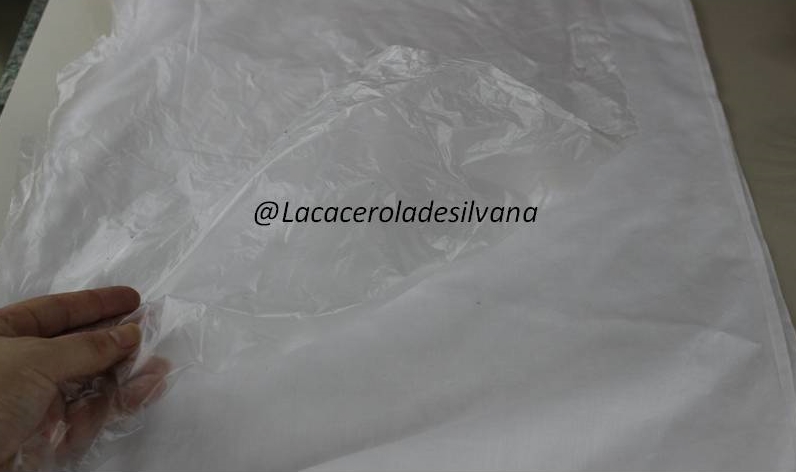 Mientras se fríe el plátano, se debe ir preparándo una tela y encima un plástico.