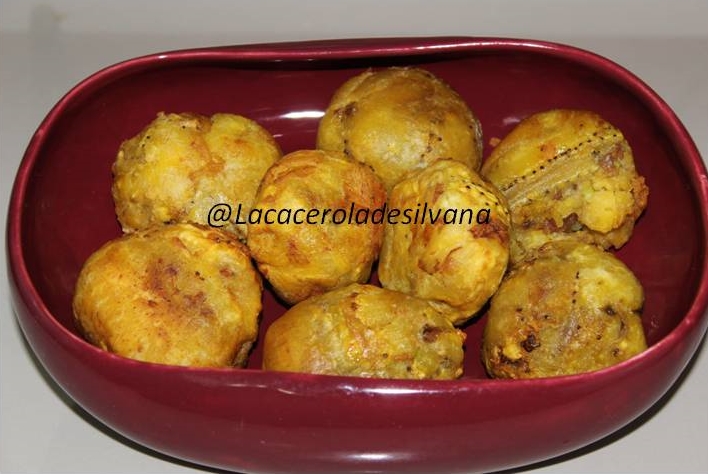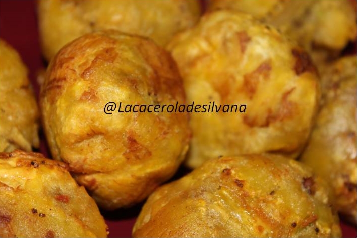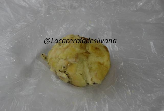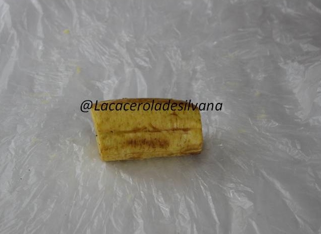 Se envuelve el platano y se le da forma de bolita o circular y debe quedar como les muestro en la imagen.