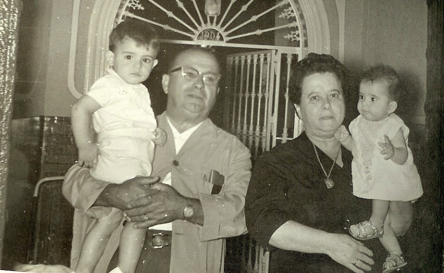 Aquí estoy yo, el punky de la derecha, con mis abuelos y mi primo Juan José.