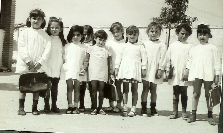 Esta foto también puede tener sus cuarenta y muchos años, al igual que la del martes pasado, también nos la hizo mi madre en el patio del colegio a donde iba de pequeña con mis amigas y compis del cole.