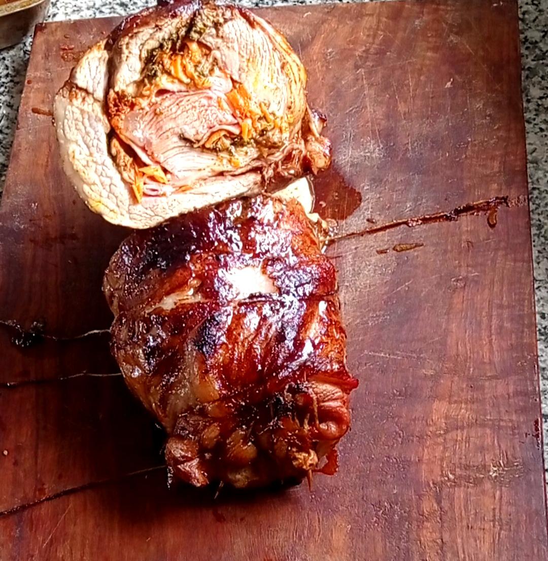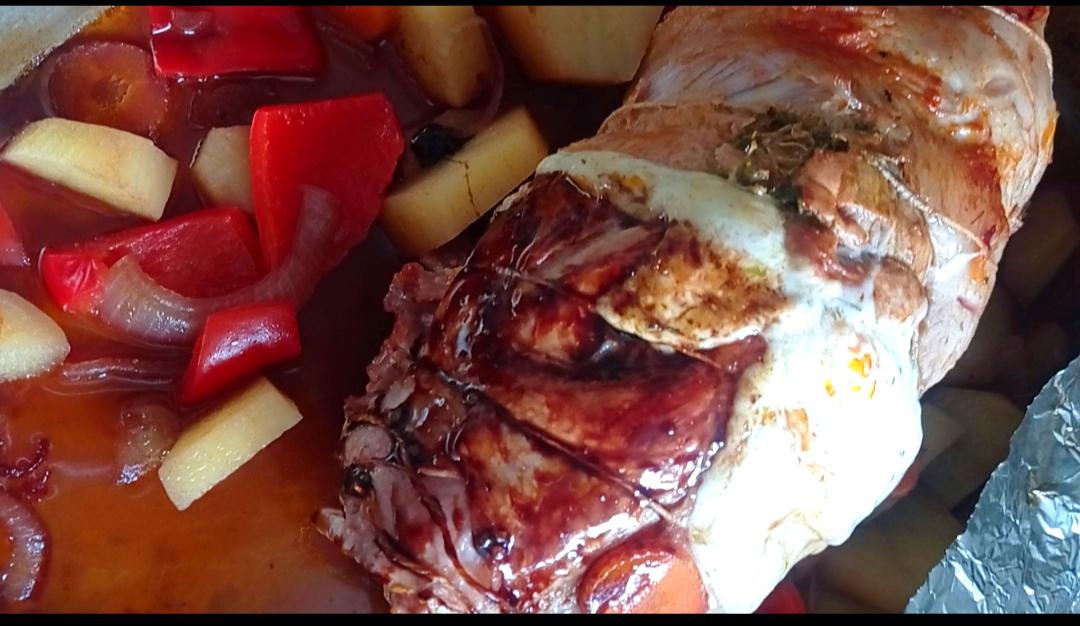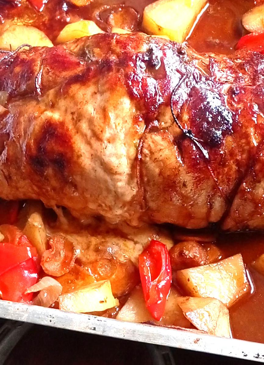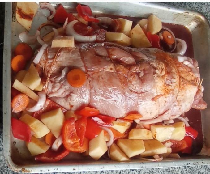 Te comparto esta receta de Marucha deshuesada arrollada, y al horno con vegetales y vino, una carne que se corta con cuchara !!! y tiene todo el sabor de la salsa y el relleno.En Venado Tuerto la carne de cerdo es super buena, y mi carnicero la deja super prolija y lista para que pueda hacer una receta como esta.