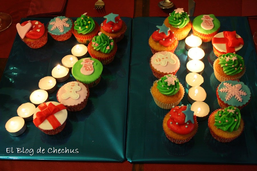 Aquí tenéis otra idea más de tarta de cumpleaños original. Si se os da bien el mundillo de las cupcakes solo tenéis que buscar unas bases y forralas con un papel bonito y poner las cups en forma del numero que queráis formar. Estas tartas quedan mejor cuanto mas grande sean los números incluso poniendo de tres a cuatro tiras para formar el numero. Nosotros eramos poquitos y por eso solo puse una tira.Era para el cumpleaños de mi suegro Miguel que cumplía 70 añazos!!. Intercalé unas velas para que quedara más de cumpleaños. Espero que os guste. Os dejo mas fotos.