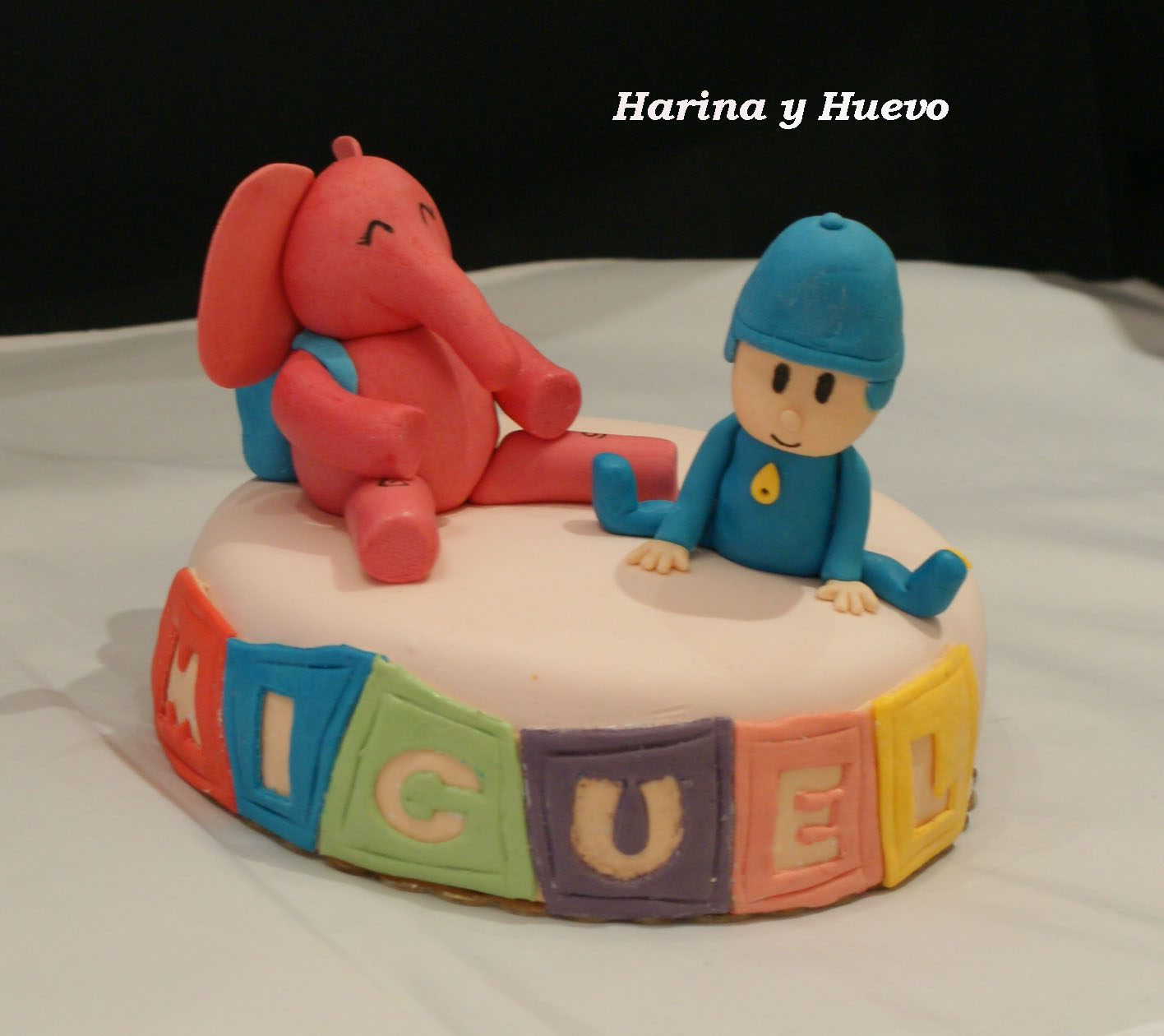Las dos siguientes tartas son para dos niños: chica y chico. La de Hello Kitty me gusta en particular, son trazos sencillos que en conjunto queda genial. La niña vino con su madre a recoger la tarta, hasta ahora ningún niño lo había hecho y os aseguro que la cara de la niña merece todo el esfuerzo. ¡Ah! y lo bueno que tiene la tarta de Pocoyo es que está hecha sin huevo y los niños que no pueden comer huevo pueden disfrutar de su tarta como todos los niños.