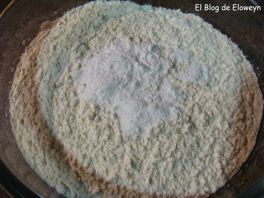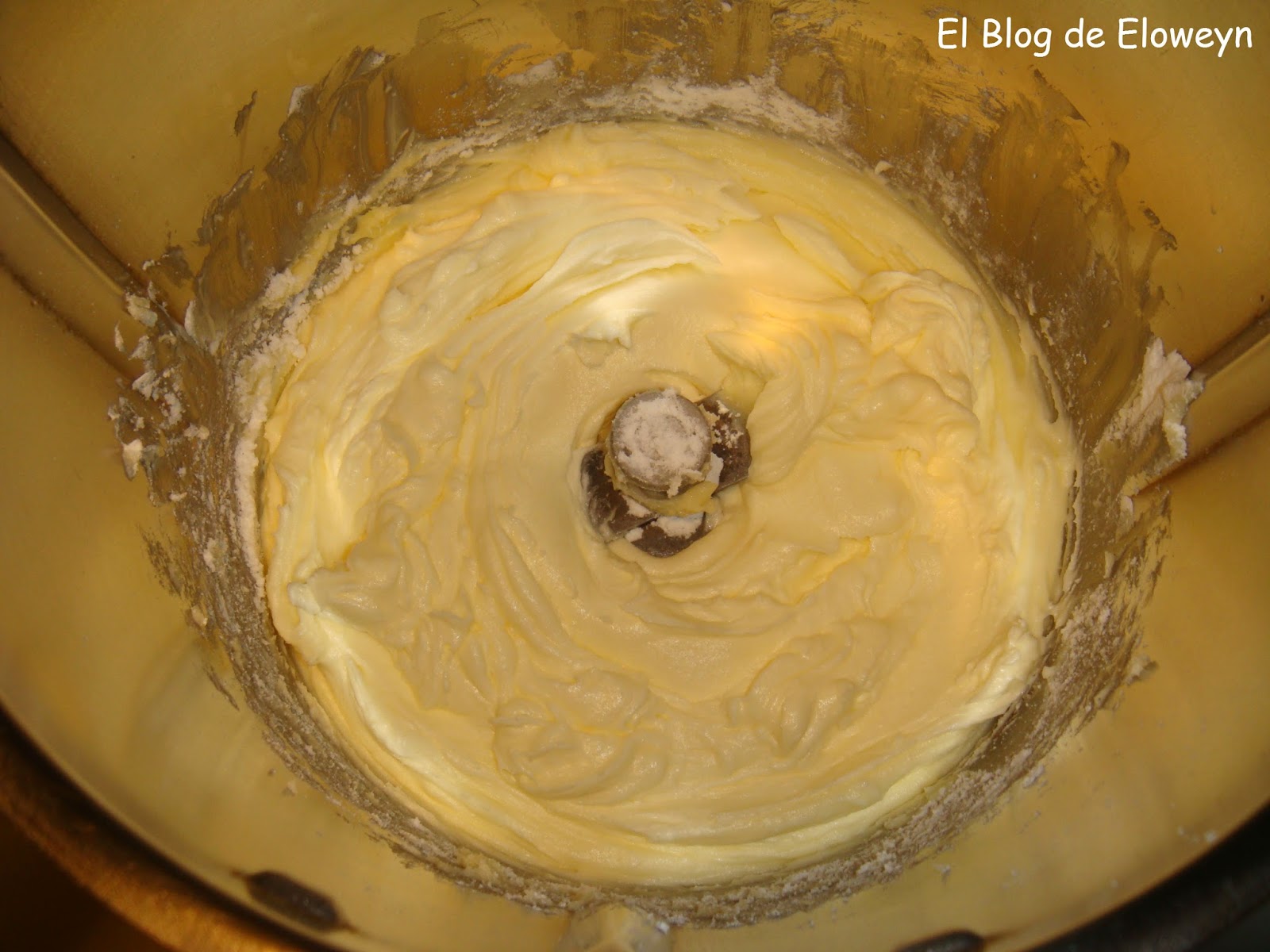 Cerrar la tapa de la thermomix y programar velocidad 3 sin tiempo ni temperatura. Quitamos el cubilete y vamos echando cucharadas de la mezcla de harina y levadura por el bocal. Se ha de hacer poco a poco y esperar a que cada una de las cucharadas se haya integrado antes de echar otra.