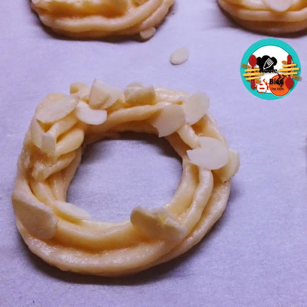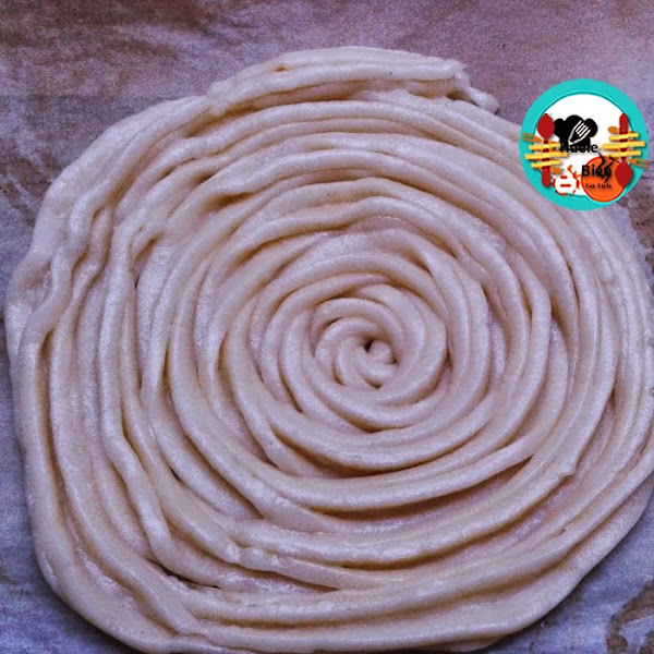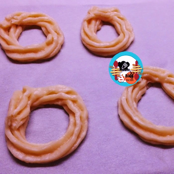 2.-Ponemos la pasta en una manga pastelera con boquilla de estrella y hacemos unas rosquillas.