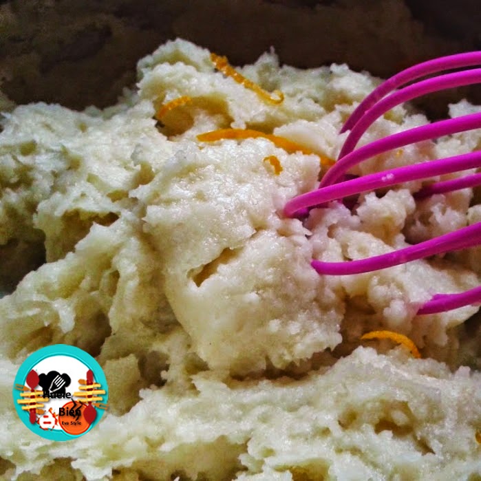 1.- Ponemos a hervir el agua con la leche, la margarina y una pizca de sal. Cuando rompa a hervir añadimos la harina, mezclamos hasta obtener una masa que se desprenda del fondo de la cazuela. Retiramos del fuego. Dejamos que se enfrie un poco. Batimos los huevos y los incorporamos de a uno. Removiendo bien entre cada adición.