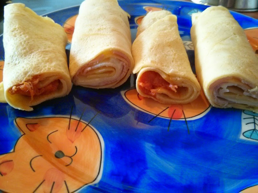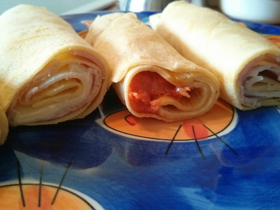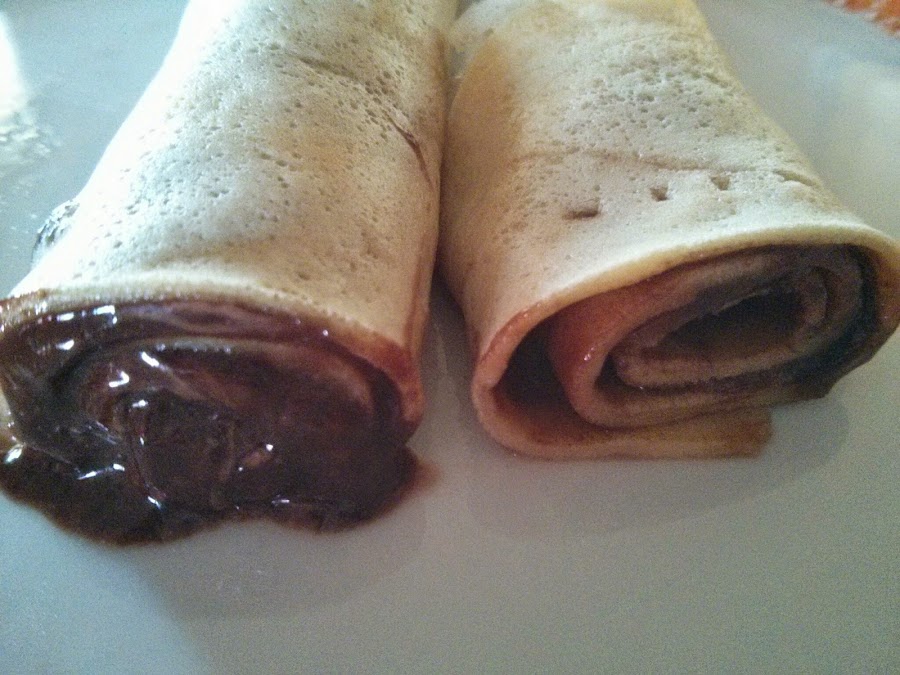 A la que me acerco a la mesa con crêpes en el plato, hay una fiesta en casa! jaja las podéis rellenar de lo que queráis, dulces, saladas, están buenísimas con lo que queráis. Yo las rellené de sobrasada, jamón dulce y queso y crema de chocolate. mmmmhhhhh la receta la adapté del libro de almuerzos de Pep Nogué, (si no era ese, era algún otro de Pep Nogué) pero por lo que he visto casi todo el mundo las hace así. AH! y un día también las probé con harina integral y muy muy buenas también.