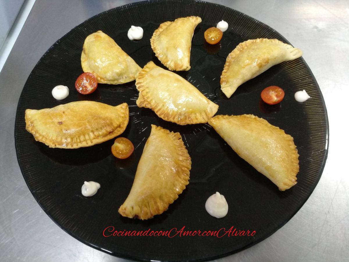 También las podemos hacer en el horno, poniendo papel sulforizado, y encima de él las empanadillas. Pincelamos con huevo batido, e introducimos al horno precalentado a 180° , durante 10min. Hasta que estén doradas.