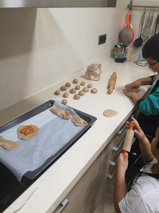 Eso si al ser harina de espelta las empanadillas se veran mas oscuras. Solo hay que coger una porción, estirarla muy bien, que no queden muy gorditas