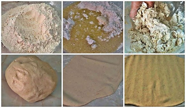 Empezamos a mezclar con una cuchara de madera y luego continuamos amasando con las manos en el bol.
