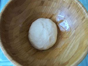 En un cuenco limpio ponemos unas gotas de aceite y frotamos en el fondo. Ponemos la bola de masa en su interior. Tapamos con un trapo de algodón humedecido y dejamos reposar unos 45 minutos.