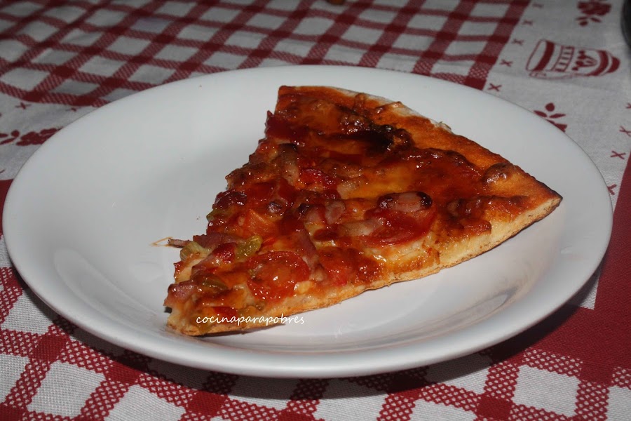 Con el horno precalentado horneamos a 180ºC hasta que quede bien hecha. Si queremos que quede bien crujiente por abajo los primeros 10 minutos colocamos la pizza en la parte baja del horno y el resto a media altura.