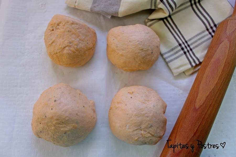 Sacamos la masa, hacemos una bola y la dejamos reposar hasta que doble el tamaño.